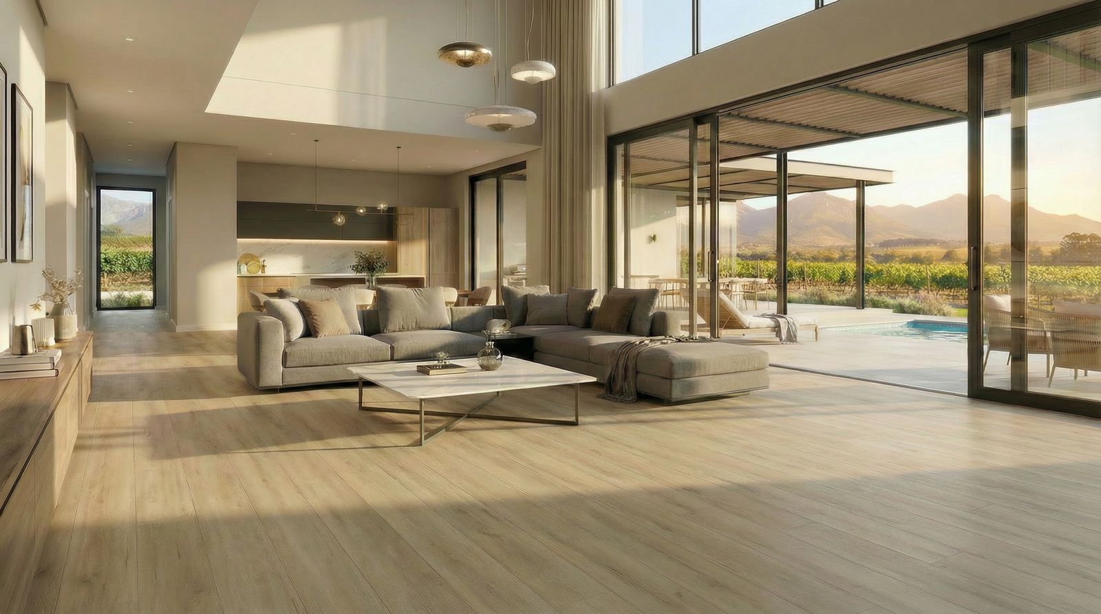- Chateau Plank Format: The planks are manufactured in an unusually large format of 2200 x 243 x 9 mm . This elongated, wide-plank design gives any room a sense of expansive elegance, closely mirroring the dimensions of premium engineered wood.