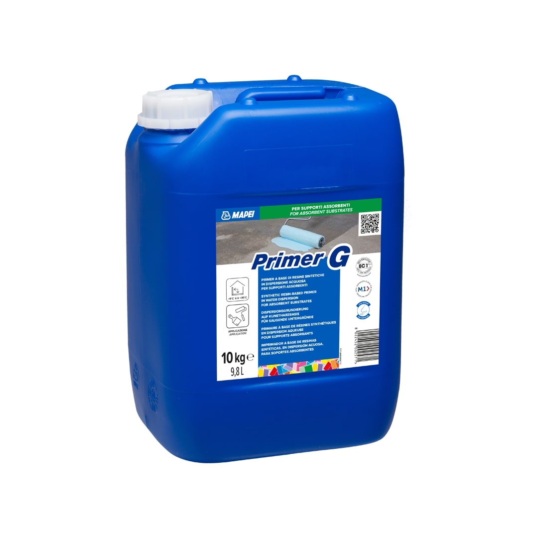 Dilute Primer G with water from 1:1 to 1:3 to protect old floors before levelling, to fix the residual dusting and to provide even absorption of substrates prior to levelling or laying. Apply on perfectly dry gypsum or anhydrite surfaces (residual moisture content less than 0.5%).