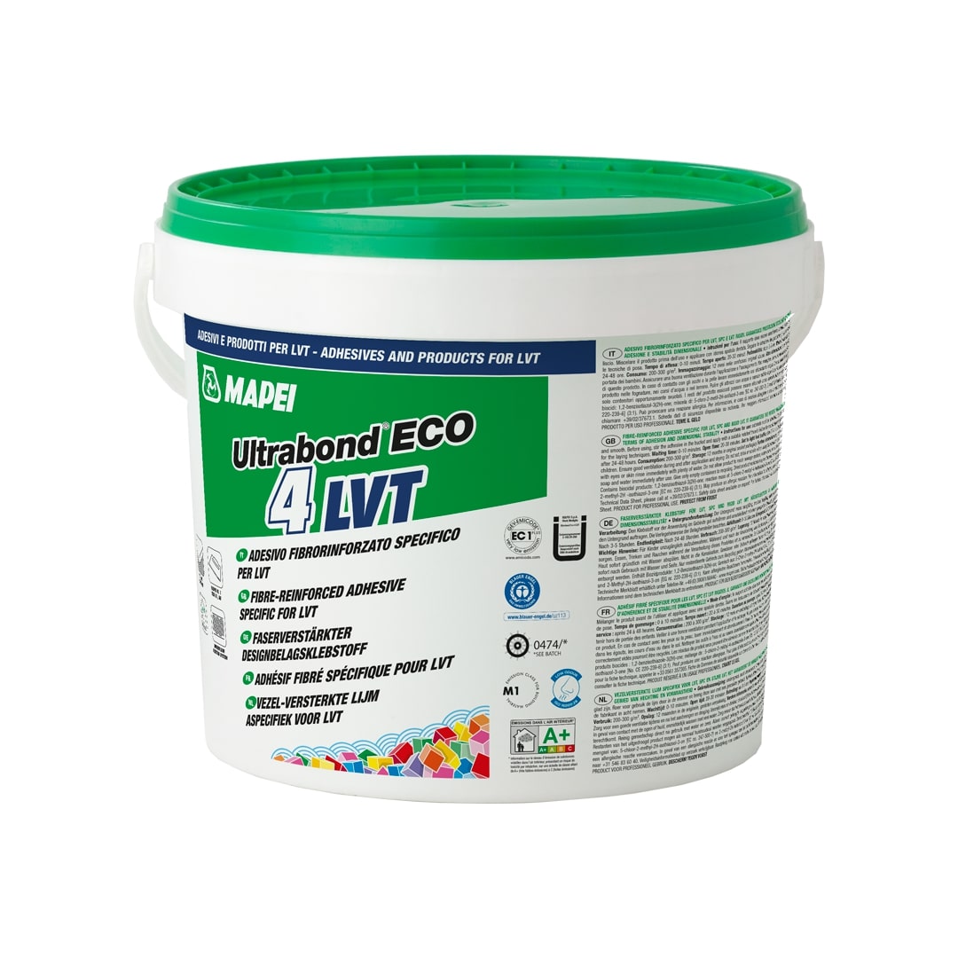 Fibre-reinforced LVT adhesive. Specifically developed for the installation of LVT SPC and rigid LVT, it guarantees the highest performances in terms of adhesion and dimensional stability.